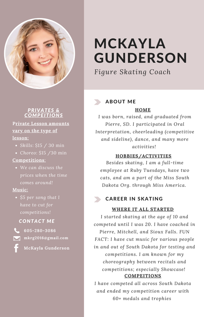 "Kenzie" will be a LTS instructor this fall. She last skated in Logan, UT where she taught LTS and was on a collegiate skating team. She has been skating for 19 years and competed at the Juvenile/Intermediate levels.